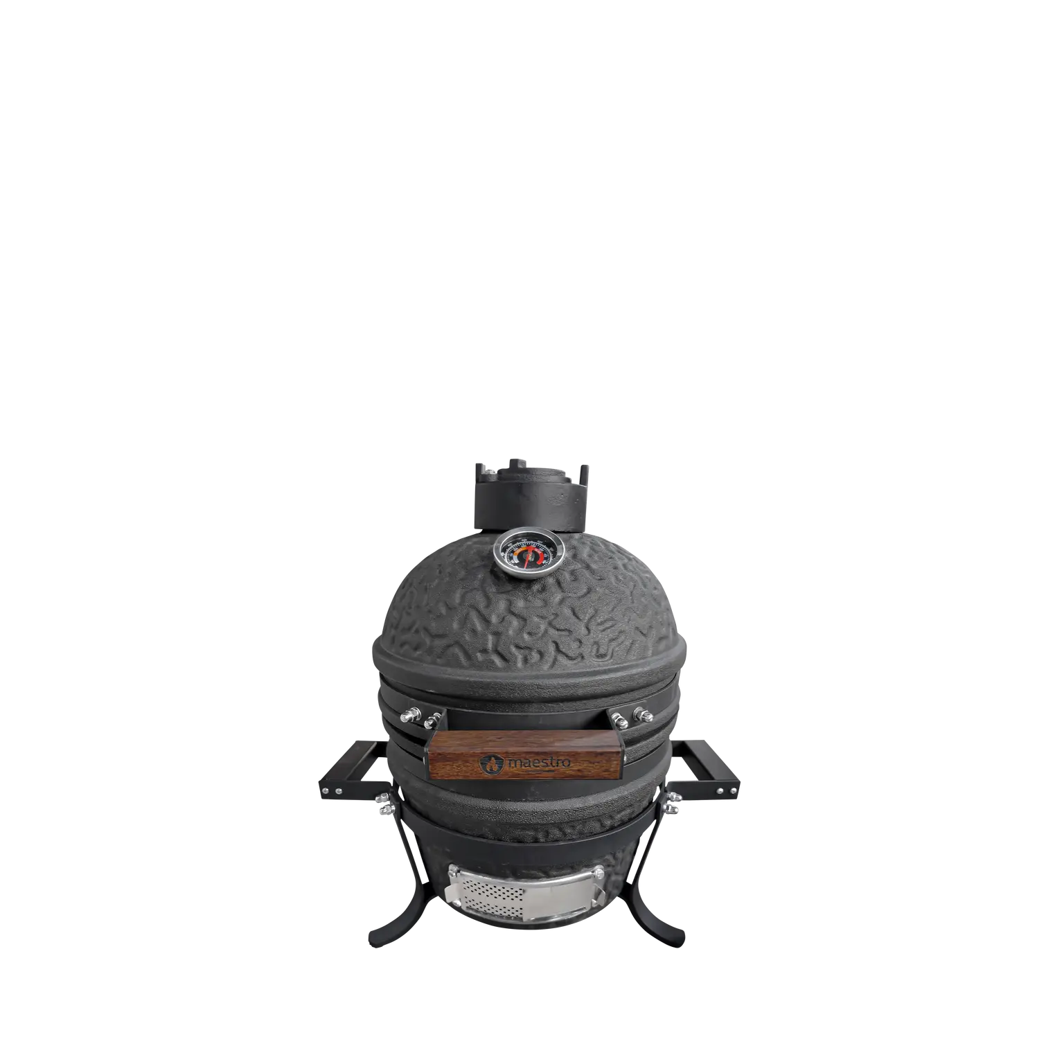 Dankzij de regelbare luchttoevoer en de geïntegreerde thermometer houd je ook bij deze compacte kamado volledige controle over temperatuur en luchtcirculatie. Of je nu snel iets wilt grillen of rustig de tijd neemt voor een langere bereiding, de Maestro Kamado Small werkt nauwkeurig en betrouwbaar. Het lichte gewicht maakt hem bovendien makkelijk te verplaatsen of op te bergen.