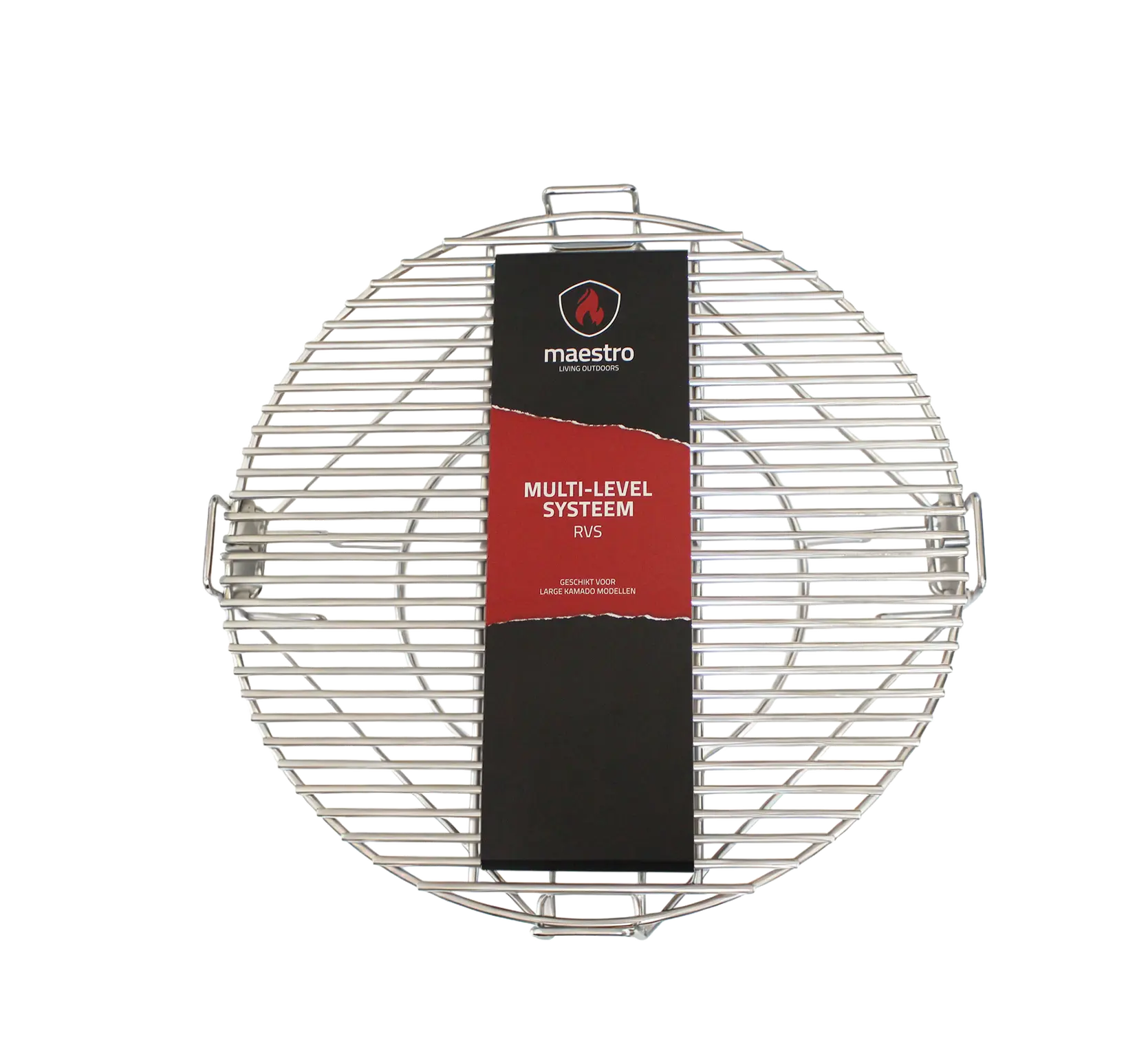 Het Multi level systeem RVS - large van Maestro biedt maximale veelzijdigheid voor je Kamado 21,5 inch. Met meerdere niveaus kun je tegelijkertijd diverse gerechten bereiden, zoals vlees, vis en groenten, zonder dat smaken elkaar beïnvloeden. Het robuuste RVS materiaal zorgt voor een gelijkmatige warmteverdeling en langdurige duurzaamheid, zelfs bij intensief gebruik. Ideaal voor barbecuefans die van gevarieerde en geavanceerde kooktechnieken houden.